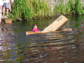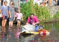 In wagemutigen Konstruktionen wird versucht sich über Wasser zu halten. Zur großen Freude der zahlreichen Zuschauer nur mit mäßigem Erfolg.